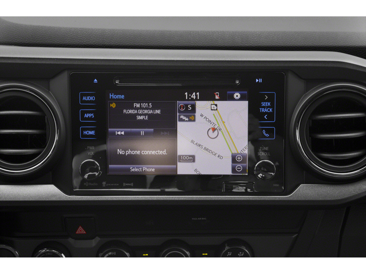 - Radio: Entune Premium w/AM/FM/CD/Nav/App Suite -inc: 6 speakers, 7" high-resolution touch-screen display w/split screen, auxiliary port, USB media port, Siri eyes free, advanced voice recognition, Bluetooth® hands-free phone capability, phone book access and music streaming, cache radio, HD Radio, HD predictive traffic and doppler weather overlay and SiriusXM satellite radio w/complimentary SiriusXM All Access 90-day trial subscription included